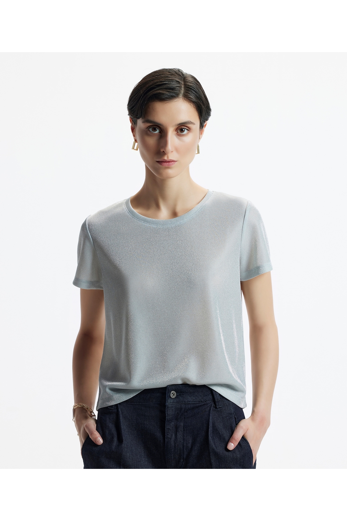 خرید اینترنتی تی شرت آستین کوتاه زنانه نقره ای یارگیجی 24YKTS9014