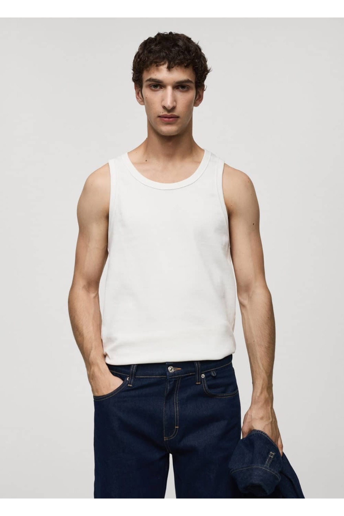 خرید اینترنتی تیشرت آستین حلقه ای مردانه سفید مانگو 67017710